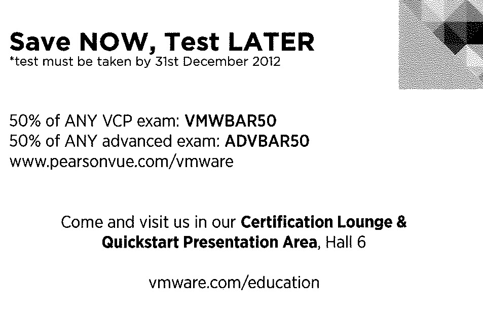 Pour ceux que ça intéresse, vous pouvez bénéficier de remise sur le passage des certifications. Saisissez le code promo sur le site PersonVue avant le 31 Décembre 2012.